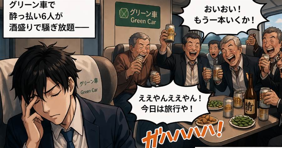 グリーン車で酔っ払い6人が宴会→車掌に注意を頼んだら「あなたが移動を」と言われた。迷惑なのはあいつらなのに…私が放った一言で車内の空気が一変した