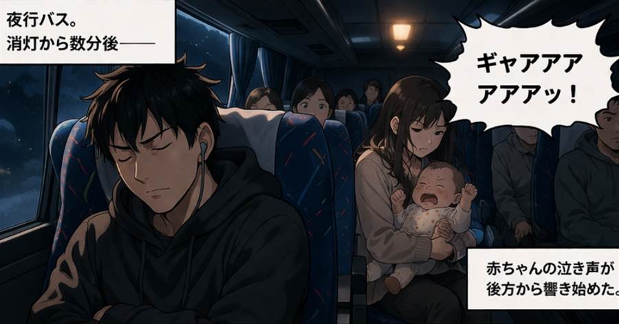 「嫌ならチャーター便でも乗れば?」夜行バスで赤ちゃんが大号泣。消灯後の車内に絶叫が響き、私は外であやしてはと伝えただけなのに逆ギレ。「赤ちゃんは泣くのが仕事」と言われた。泣くのが仕事だから赤ちゃんは悪くない、でも選んだのは親だ運転手が動き、空気が変わった。