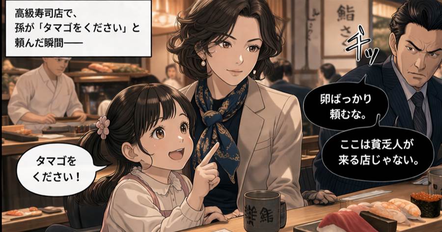高級寿司店で孫がタマゴを注文すると隣のエリート銀行員「貧乏人はスーパーの寿司を食べてろよw」と孫にお茶をぶっかけた→直後、笑顔の孫「ねえお兄ちゃん…」結果w