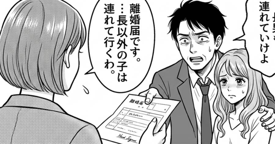 夫が土下座で「20歳年下の彼女が妊娠したから離婚してくれ」私「はい、離婚届け。長男以外は連れていくね」夫「は?長男も連れていけよ」私「それは無理、だってこの子は…」(続)