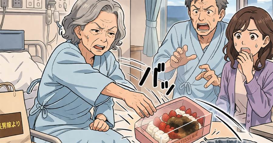 癌で入院中の私に長男嫁が差し入れした高級ケーキを捨てた私→夫「何してる!嫁に謝れ!」私「ケーキの中身見た?」直後、夫はブルブル震え出し…(続)